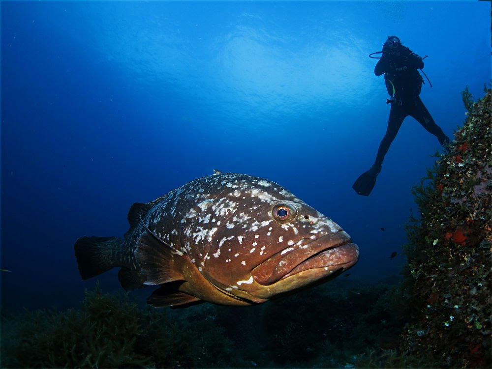 Destacan poblaciones de peces como los meros, las poblaciones de nacras, la langosta roja, de gran importancia para la pesca; o la llamativa gorgonia roja.